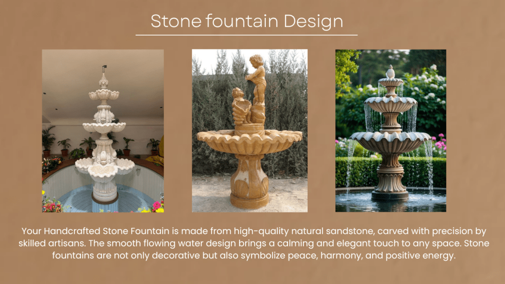 फाउंटेन, स्टोन लैम्प, मूर्तियाँ और गार्डन डेकोरेशन।